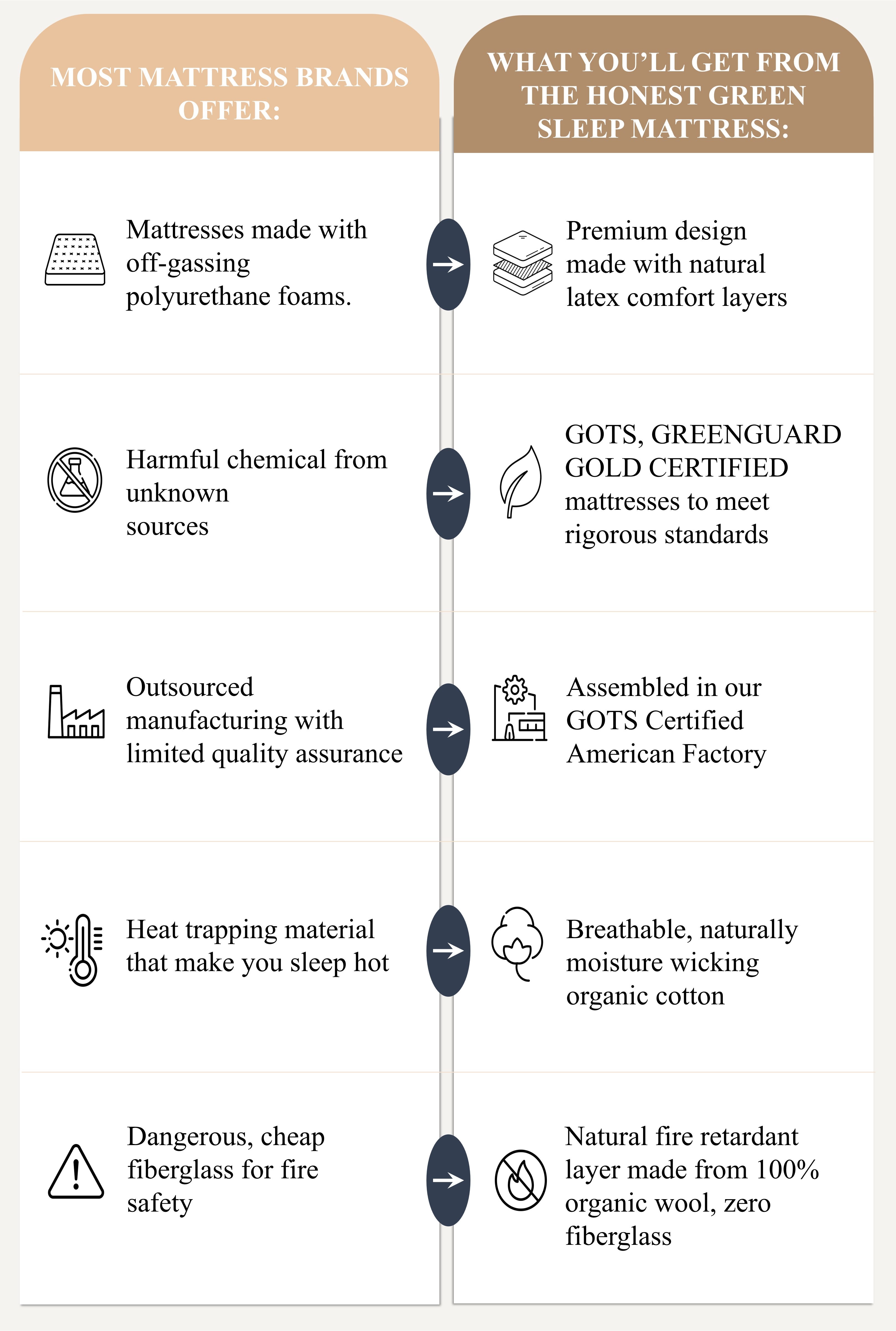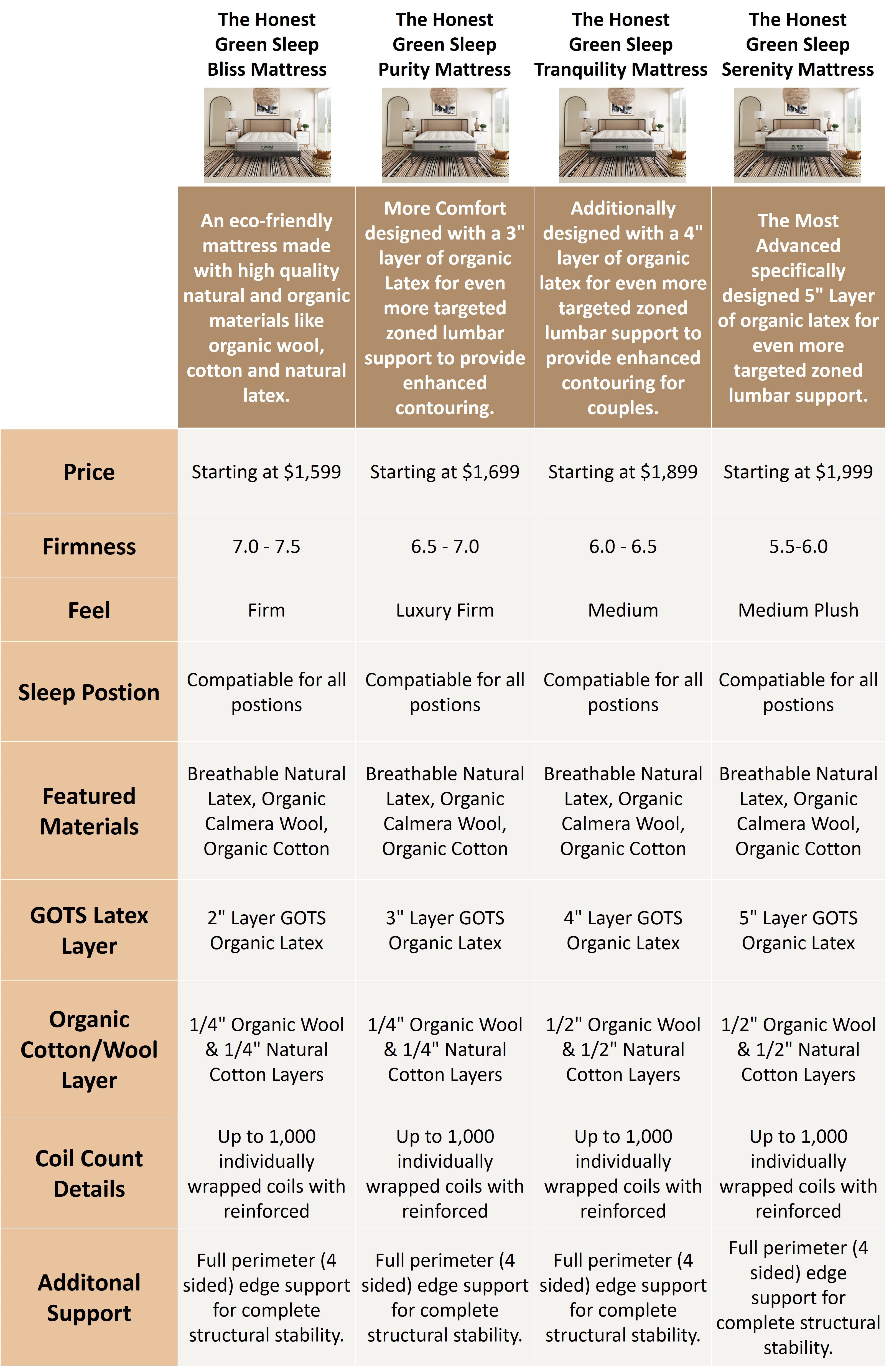 If you've shopped similar high end Talalay Latex mattresses, you may already have seen beds costing $10,000 or more. Experience Honest Green Sleep Luxury today for 1/3 to 1/2 the price! There are simply no better built Natural Talalay Latex mattresses on the market. Why pay ridiculous prices for the same or better quality?
